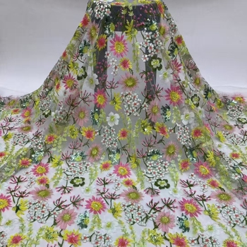 רקמה רב-צבע 3D פרח אפריקה מסיסים בדים תחרה 2025 תחרה צרפתית נטו עם אבנים