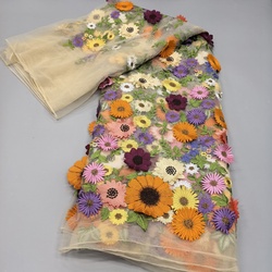 מפעל מכירה ישירה 2025 אפריקאי נייגרן דובאי רשת טולה רקומים אפליק בד תחרה 3D פוליאסטר