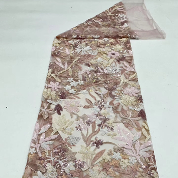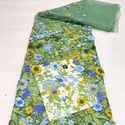 2025 yeni lüks düğün dantel tasarımları ile 3D çiçekler nakış Net fantezi Net kumaş düğün için